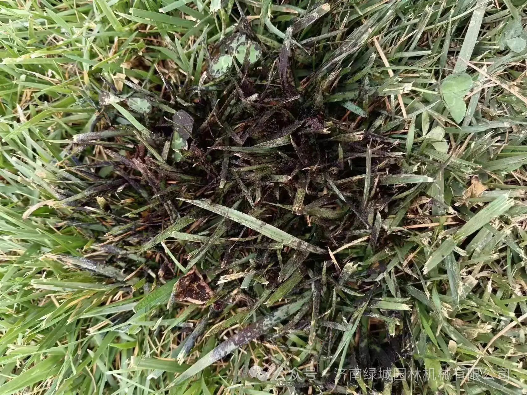 六、黏霉病:發生較少。識別特點是草坪局部呈現黑色,葉片上發黑,后期同時有白色物附著于黑色葉片上。一般無需特別防治,可用水清洗。